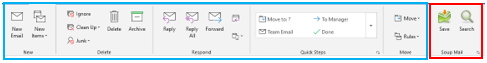 4. Once the reset process is complete, your Outlook account will be automatically reconnected. Start Outlook if it does not start automatically. The Soup Mail Outlook add-in should now appear on the Outlook ribbon as shown below.