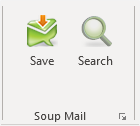 1. From the ribbon in Outlook, launch the the Soup Mail Outlook add-in by clicking on arrow at the bottom of the add-in. This will open the add-in in a new window.