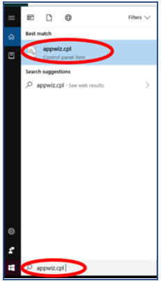 - Click on the search bar alongside the Windows button on your desktop, and type appwiz.cpl and hit Enter: